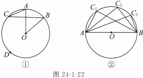 (1)如图24-1-22①,A,B是⊙O上的两个定点,改变动点C在$\overset{\frown}{ADB}$上的位置,看看圆周角∠ACB的度数有没有变化,你发现了什么?