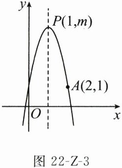 10. 如图22-Z-3,已知二次函数$y=ax^{2}+bx+c$图象的顶点为$P(1,m)$,且经过点$A(2,1)$,有以下结论:①$a<0$;②$abc>0$;③$4a+2b+c=1$;④当$x>1$时,$y$随$x$的增大而减小;⑤对于任意实数$t$,总有$at^{2}+bt≤a+b$.其中正确的有( )