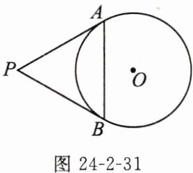 1. 如图24-2-31,从$\odot O$外一点P引$\odot O$的两条切线PA,PB,切点分别为A,B.如果$∠APB=60^{\circ },PA=8$,那么弦AB的长是(