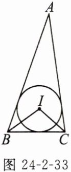 3.(教材练习T1变式)如图24-2-33,已知$\odot I$是$△ABC$的内切圆,点I是内心,若$∠A=28^{\circ }$,则$∠BIC$等于(