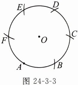 4. 我们可以只用圆规将圆等分,例如:将圆六等分,如图24-3-3,只需在$\odot O$上任取点A,从点A开始,以$\odot O$的半径为半径,在$\odot O$上依次截取点B,C,D,E,F,从而点A,B,C,D,E,F把$\odot O$六等分. 下列可以只用圆规将圆等分的是 (