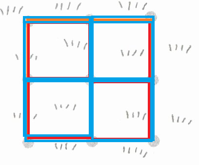 请你帮物业工作人员设计小花圃,在草地上围出一个长方形,用不同颜色的笔画一画,看看能围出多少个不同的长方形。