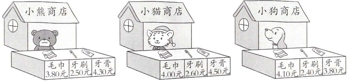 我要买毛巾,到()商店便宜;我要买牙刷,到()商店便宜;我要买牙膏,到()商店便宜。