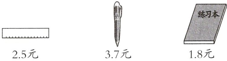 解:已知直尺$2.5$元,圆珠笔$3.7$元,一共花费$2.5 + 3.7=6.2$(元)。