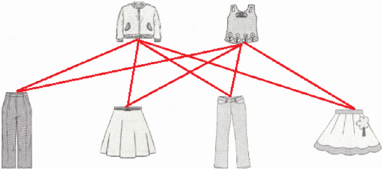 一、一套衣服有多少种不同的搭配方法?先想一想,再连一连。