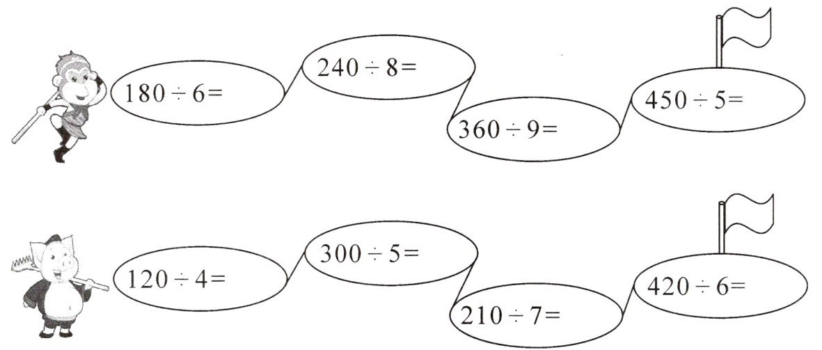 $801÷(3×3)$ $120-80÷4$ $(43+32)÷5$
