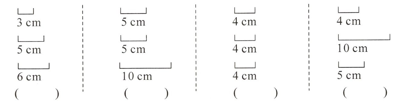 三、下面哪组线段可以围成一个三角形?(能围成的画“√”,不能围成的画“×”)