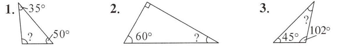 1. $ 95^{\circ} $ 2. $ 30^{\circ} $ 3. $ 33^{\circ} $