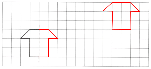 根据对称轴画出轴对称图形的另一半,然后画出这个图形先向右平移9格,再向上平移3格后得到的图形。