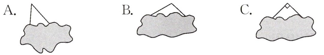 2. 在下面各图中,每个三角形都只露出了一部分,根据每个三角形露出的部分,不能判断出这个三角形一定是哪一类三角形的是( )。