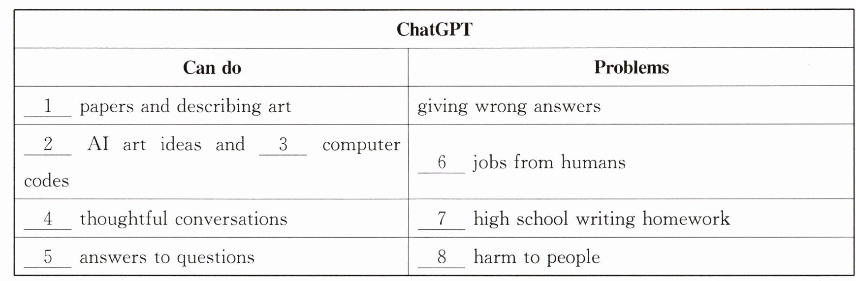 3. ChatGPT could challenge (挑战) high school writing homework. It will make it easier for students not to write their own papers and lose their own responsibility (责任).