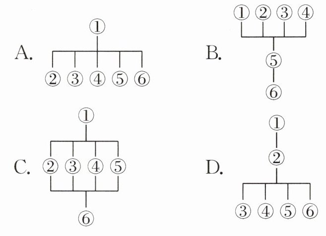 4. C [解析]篇章结构题。总览全文可知,第一段是由四个设问引出主题;第二段到第五段分别介绍了死海的详细情况;最后一段总结全文。由此可判断正确的结构如 C 项所示。