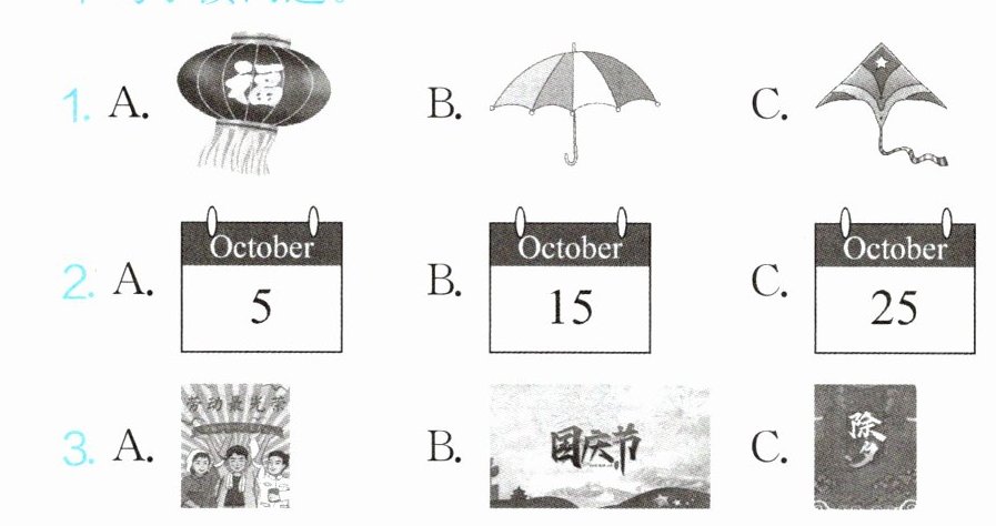 选择与所听到的句子意思相符的图画。每个句子读两遍。