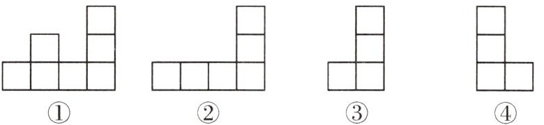 右图是小红搭的积木从上面所看到的图形,那么这个积木从前面看到的图形是(),从左面看到的图形是()。