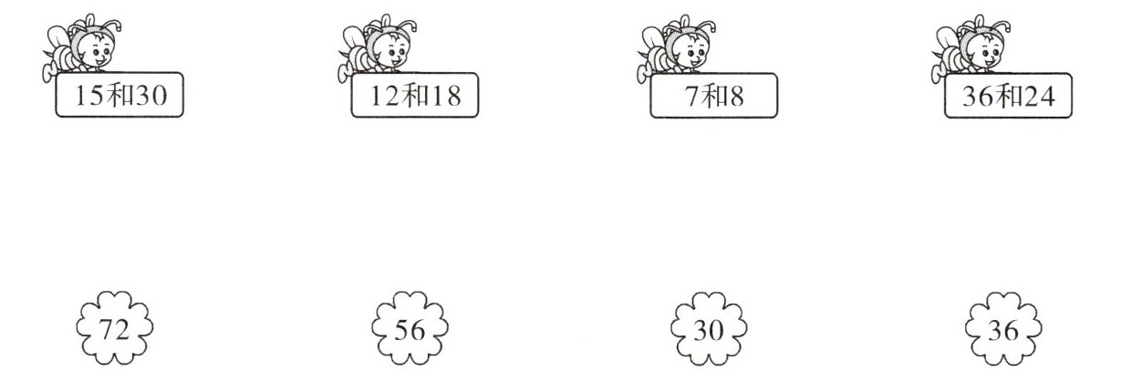 找出下面每组数的最小公倍数,再连一连。