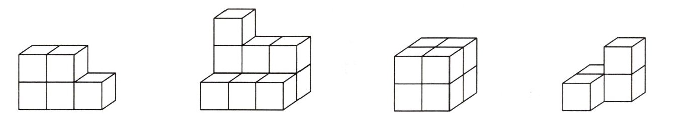 二、下面的几何体都是用棱长为 1 cm 的小正方体拼成的,说一说它们的体积是多少。