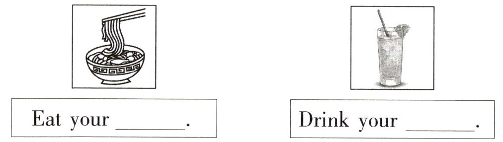 2 (★)看图,从方框中选择正确的单词补全句子。