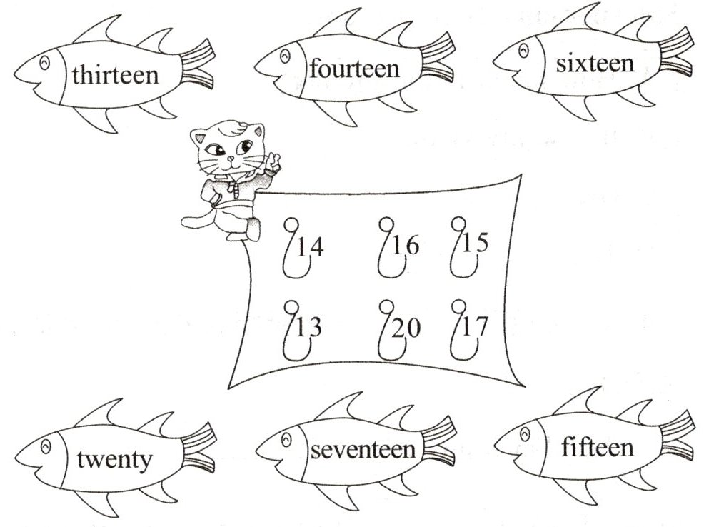 1 (★★)小猫钓鱼。(将英文单词和其对应的阿拉伯数字连起来)