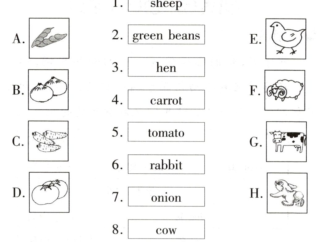 ( )1. A. sheep B. goat C. cow D. farm