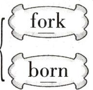 3. ( )$\left\{\begin{array}{l} \text{fork} \\ \text{born} \end{array}\right.$ 4. ( )$\left\{\begin{array}{l} \text{for} \\ \text{world} \end{array}\right.$