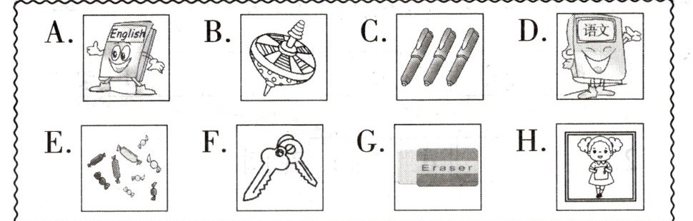 (★★)Susan 的房间非常乱,妈妈把 Susan 的物品分别放进了盒子里和书包里。请你根据以下对话指出各个物品所在的地方。(把代表物品的字母代号写在相应的横线上)(8 分)