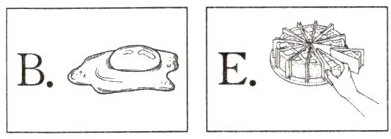 在去学校的路上,奇奇发现附近新开了一家餐厅。我们一起来看看有什么吧!请根据图片提示,选择对应的单词,补全菜单。