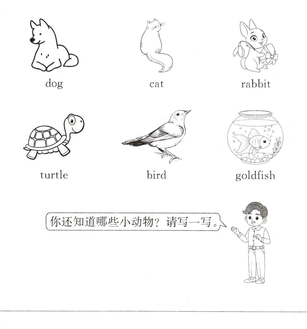 一、小朋友,你喜欢养小动物吗? 你最喜欢哪种小动物呢? 让我们一起来看一看下面的小动物,大声读一读这些单词吧!
