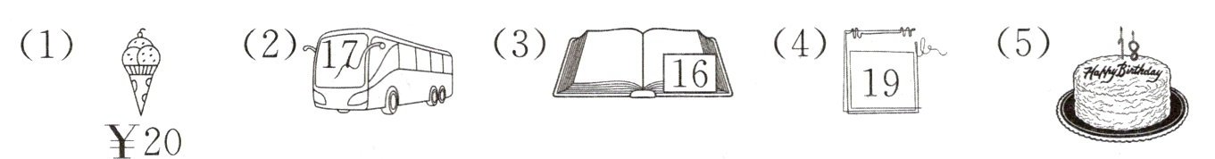 玲玲进入第一间密室,墙上挂着五幅画,每幅画中都隐藏着不同数字。她需要根据图片内容,将正确的选项填入图片下的括号里。