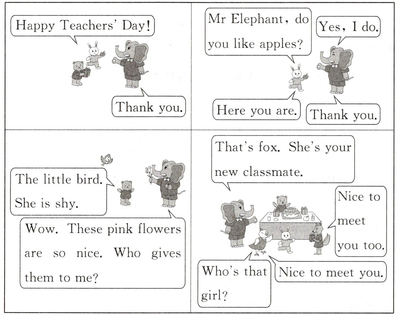 Today is Teachers' Day. The animals are giving gifts(送礼物) to their teacher Mr Elephant.