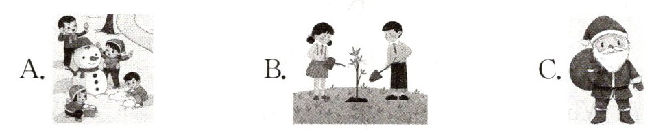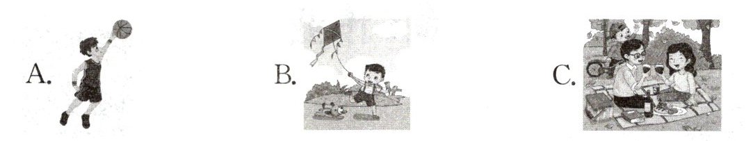 四、(★★☆☆☆)看图,根据句子意思选择图片。
