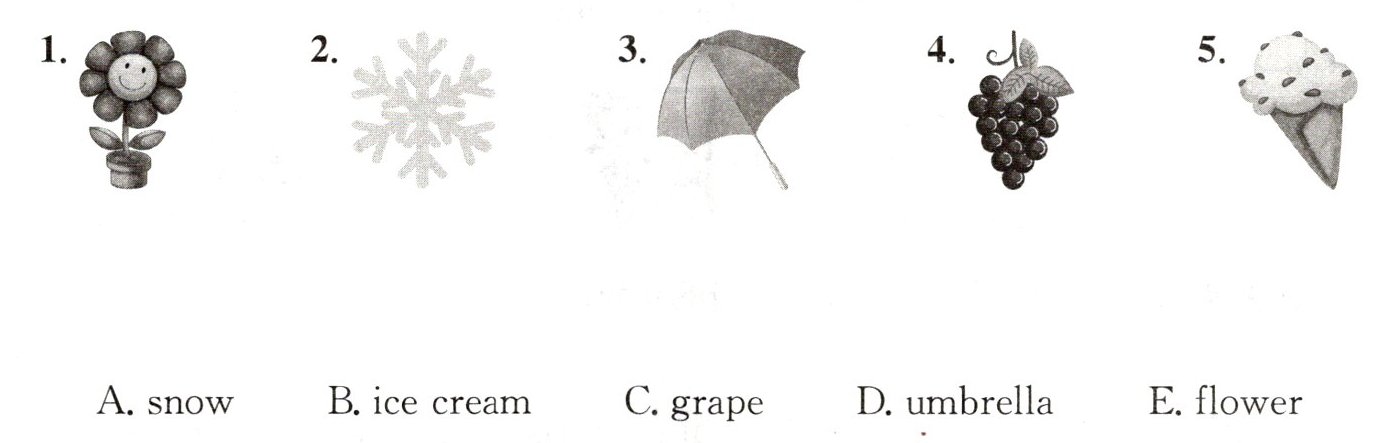 A. snow B. ice cream C. grape D. umbrella E. flower