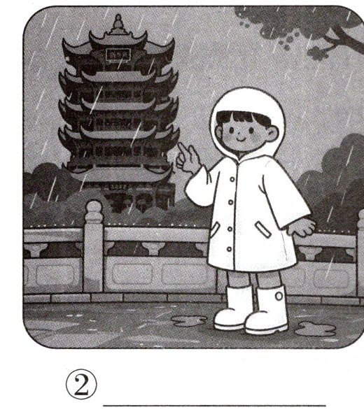 ③ Suzy ,将雨衣涂成黄色(yellow),靴子涂成绿色(green)。