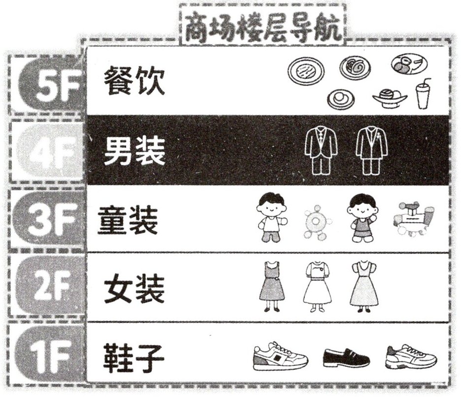 () 4. On the second floor (2F), you can buy ______ for mum.