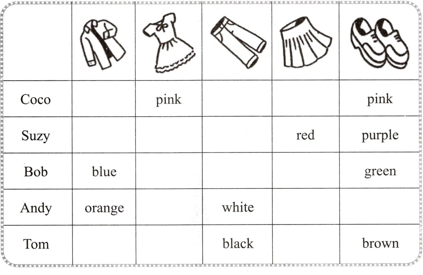 5. () Suzy's wearing an orange skirt and brown shoes.