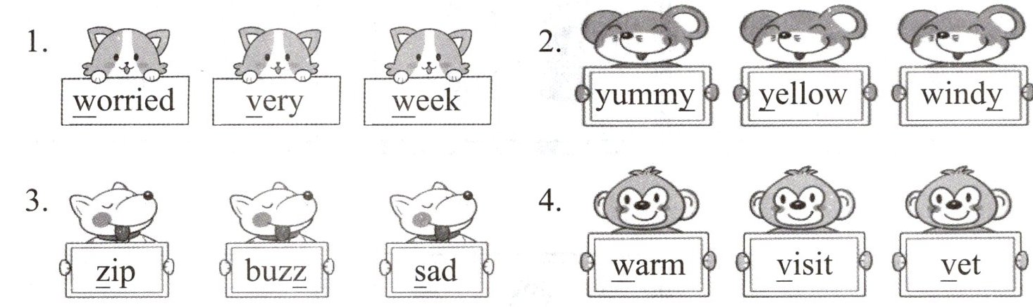 读单词,圈出画线部分发音不同的单词。