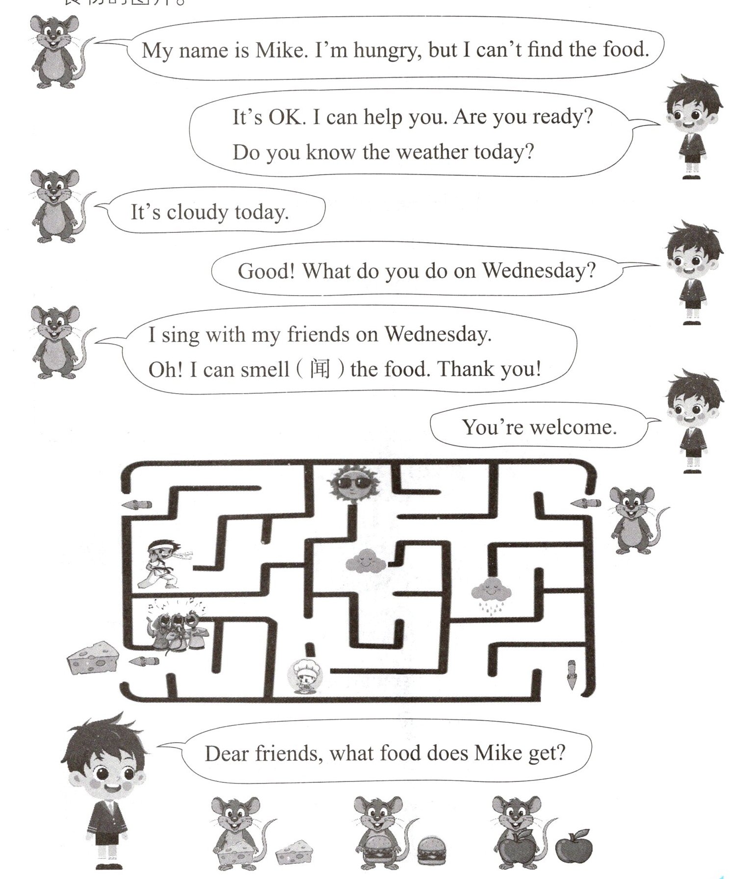 读对话,画出小老鼠 Mike 在迷宫中行进的路线,并圈出它找到的