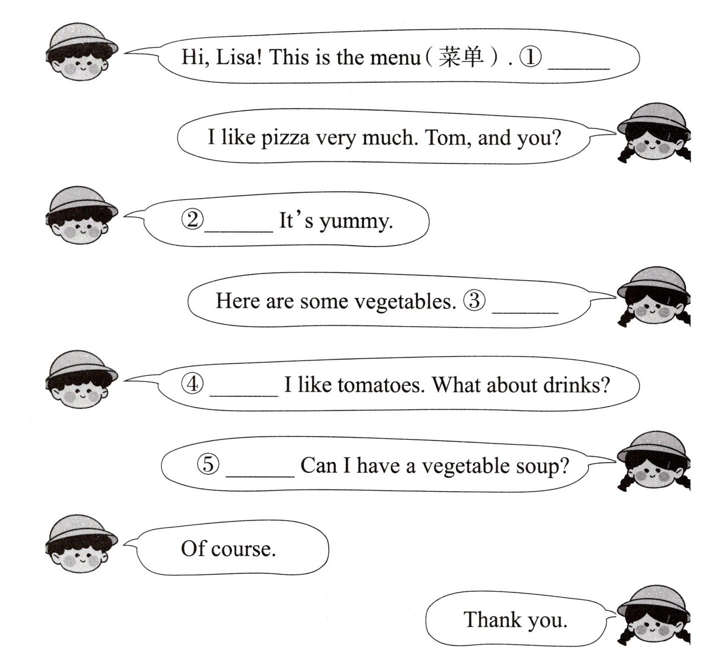 读对话,将正确选项的字母序号写在横线上,完成对话。