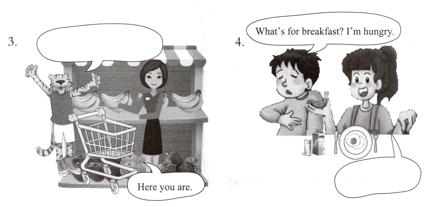 读图片,在对话框内写出对应问句或答句的字母序号。