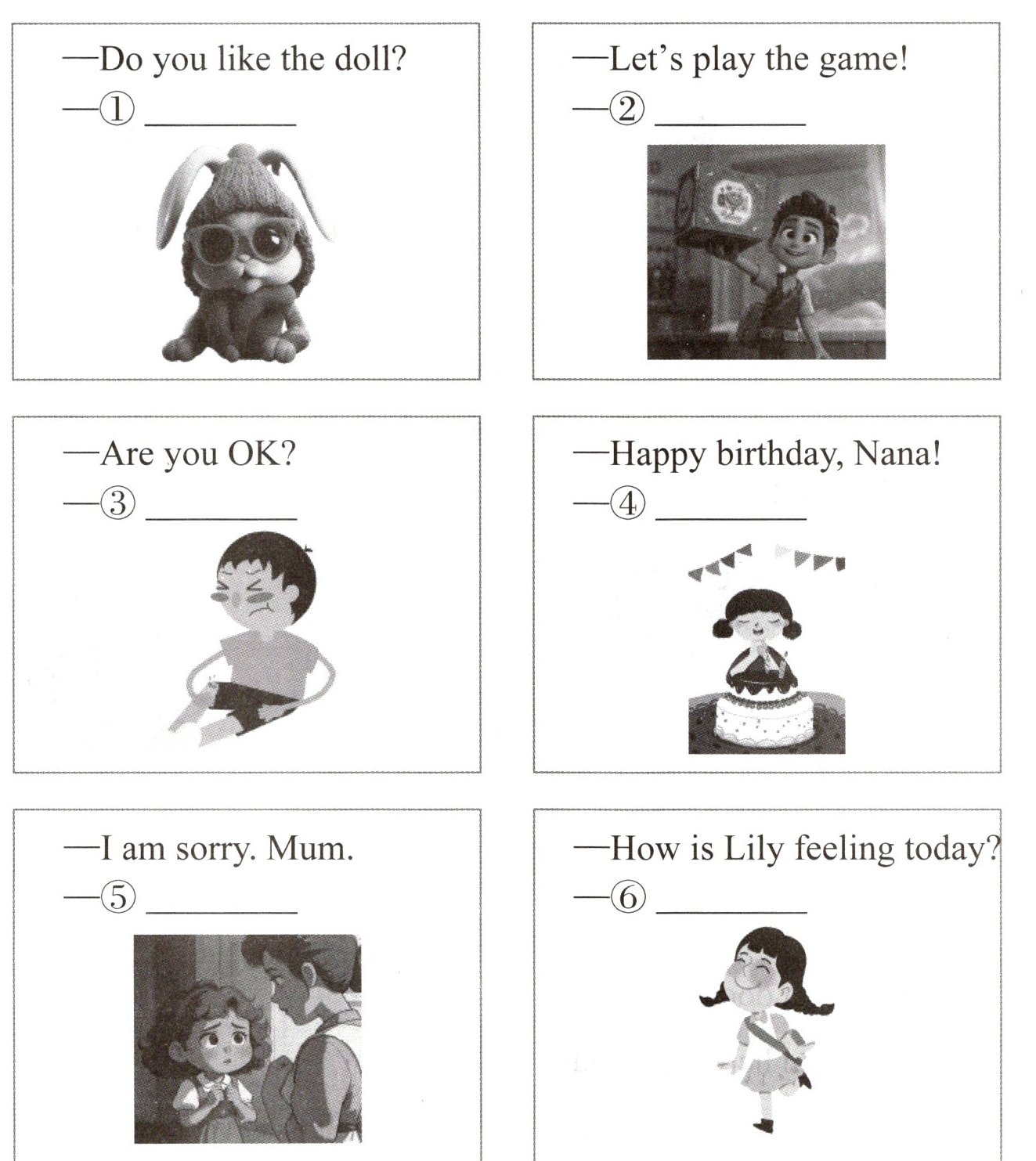 读句子,将对应答句的字母序号写在横线上。