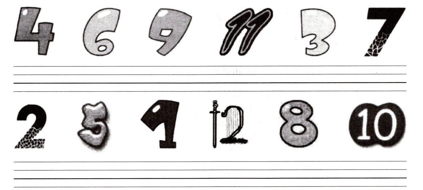 将数字对应的英文单词写在四线格里。
