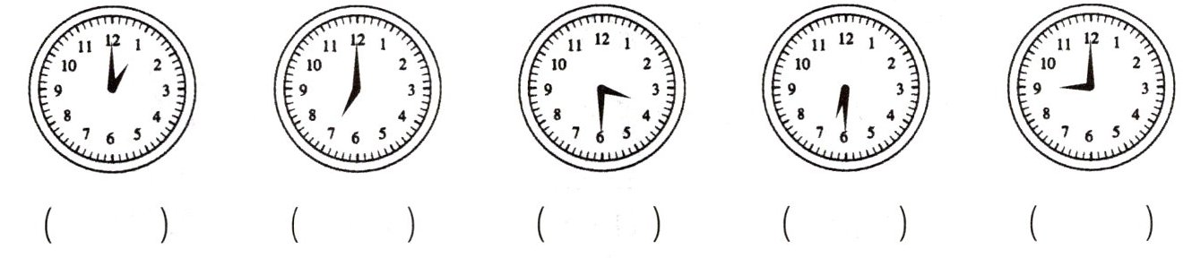 Tommy 正在教读幼儿园的弟弟认时钟。你能帮帮他吗?把相应的时间贴在时钟下面吧!