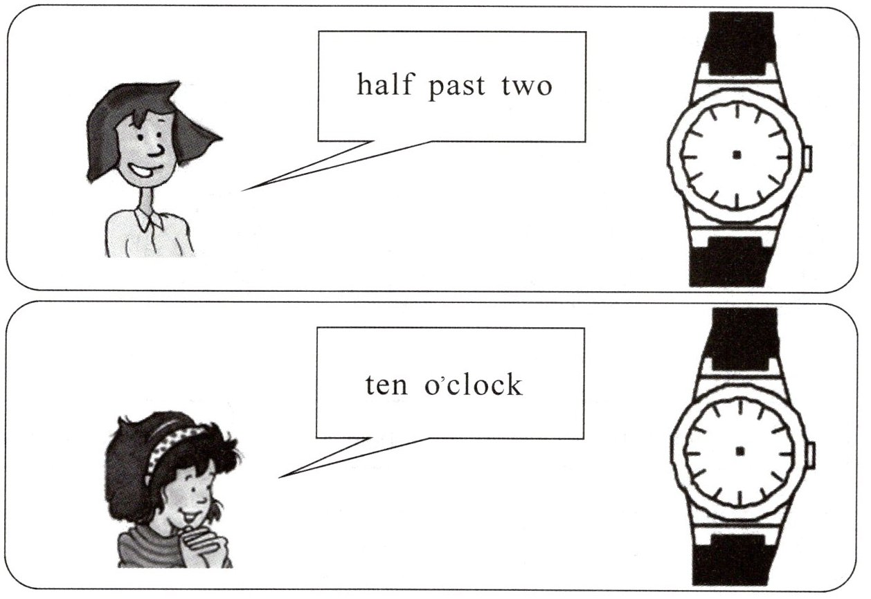 - 第一块表:时针画在2和3中间,分针画在6处。