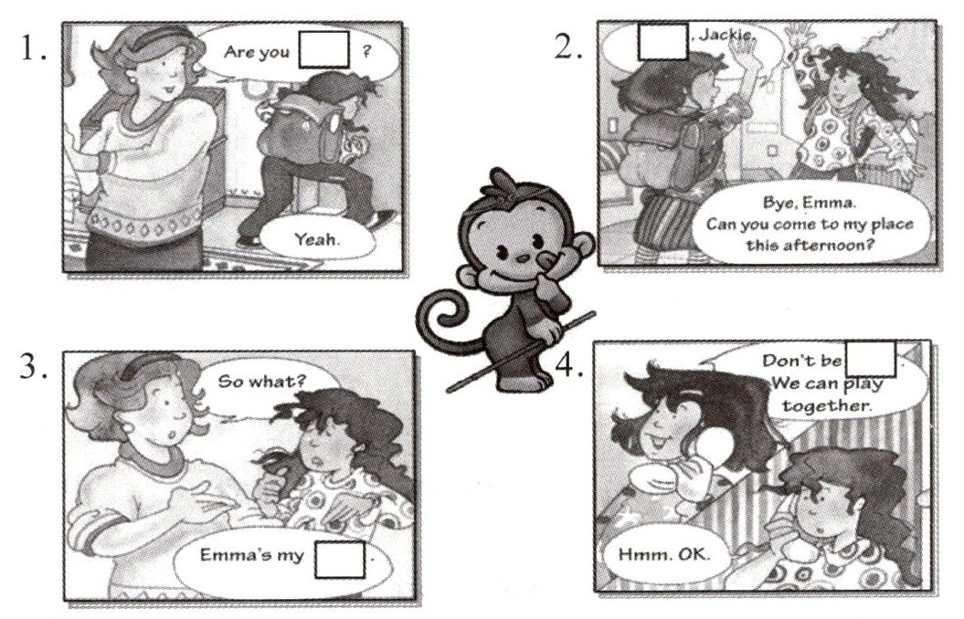 调皮的小猴把故事中的单词或词组抹掉了,你能找回来吗?