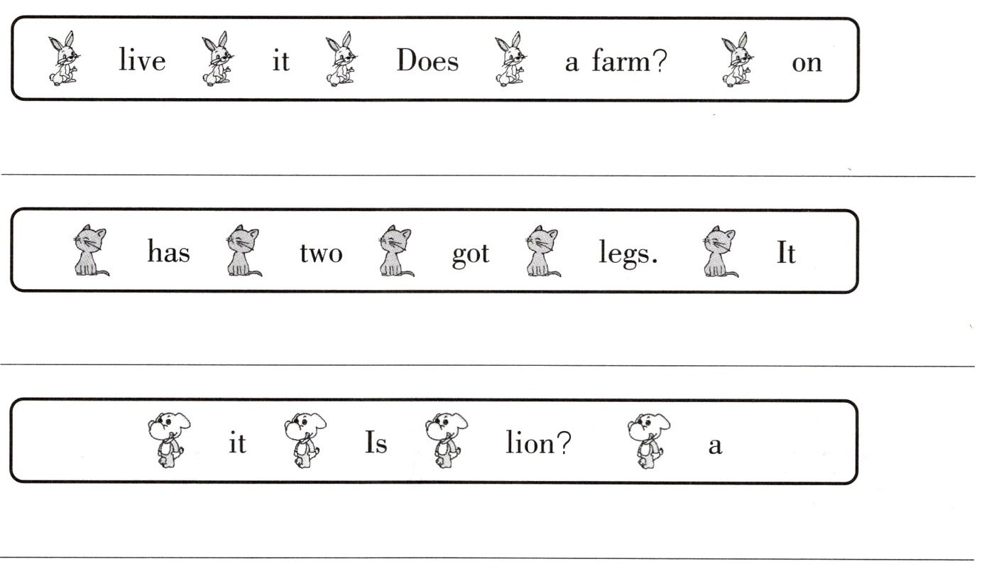 1. cat dog hippo farm rabbit