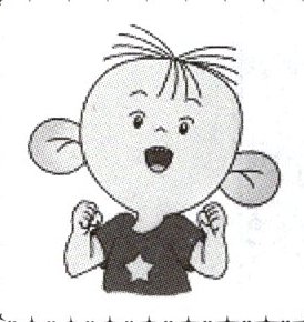He has got two ____ ears, two small ____, a ____ nose, a big ____ and a ____ face.