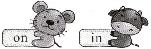 请你读读句子,然后从两个小动物手中选出正确的卡片,将句子补充完整。