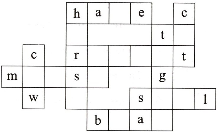 将缺失的字母填入方格中,把与动物有关的单词补充完整。