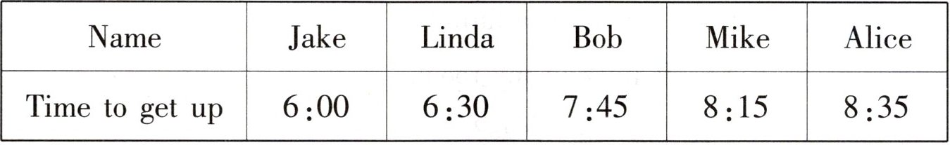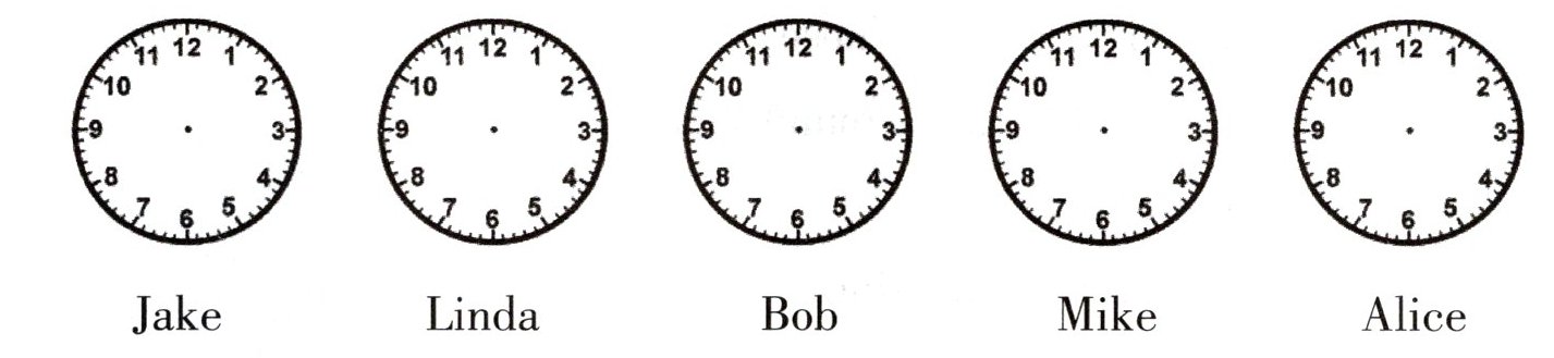 根据表格中给出的信息,在钟面上画出小朋友们起床的时间。