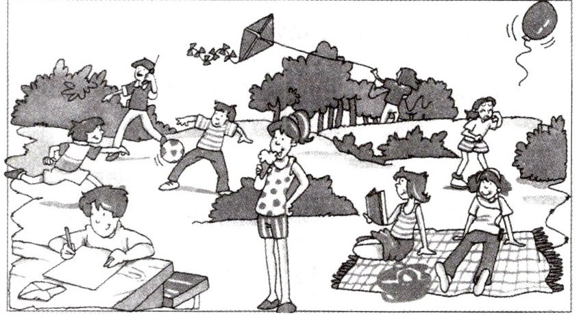 将单词或词组的字母序号填入对应图片下方的括号中。