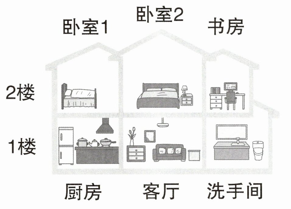 We have a new house. There are ( 有 ) six rooms in it. On the first floor, there is ( 有 ) a living room, a 1.